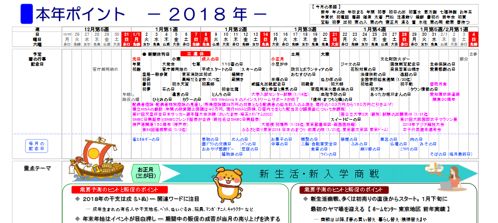 なおイベントについては、朝日オリコミの販促カレンダーが参考になります。年間の気温の推移など需要予測に関係のある下記の様なデータを無料で公開されています。